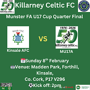 🙎♂️🏆Munster FA U17 CupKinsale AFC 🆚 🇳🇬MU17A📆Sunday 8th February⌚️Kick off: 2pm🏟️Venue: Madden...