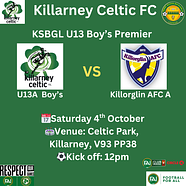 🙎♂️KSBGL U13 Boy’s Premier🇳🇬U13A Boy’s 🆚 Killorglin AFC A📆Saturday 4th October⌚️Kick off: 12p...