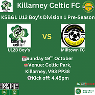 Another tough day again for the boys in dirty conditions out in Listowel with a strong wind against us in the first half which played into their advantage leading the game at the end of the first half 2-0. The Killarney boys tried hard up top but couldn’t get too many shots off with the wind. Second half was a different story with very positive play by our Celtic boys were certainly on top for the 35 mins. Listowel got a goal from a corner after a brilliant save from Rylan Flynn. Near the end of the game Noah Brosnan scored a great free-kick but unfortunately there wasn’t enough time to score more.