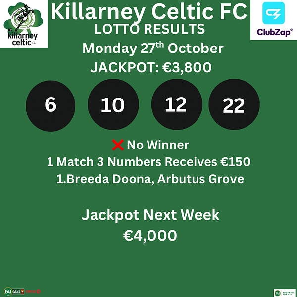 🇳🇬 Killarney Celtic Lotto Monday 27th October 2025