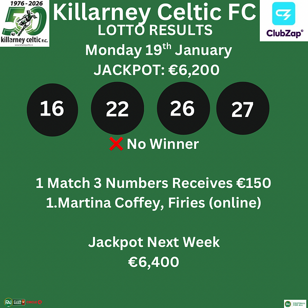 🇳🇬 Killarney Celtic Lotto Monday 19th January 2026