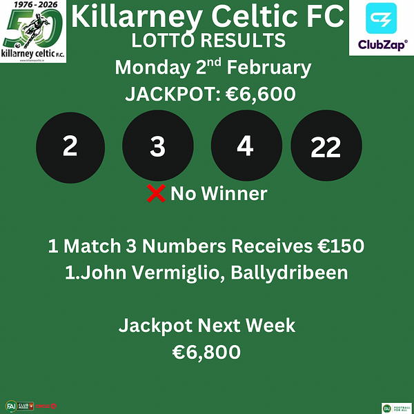 🇳🇬 Killarney Celtic Lotto Monday 2nd February 2026