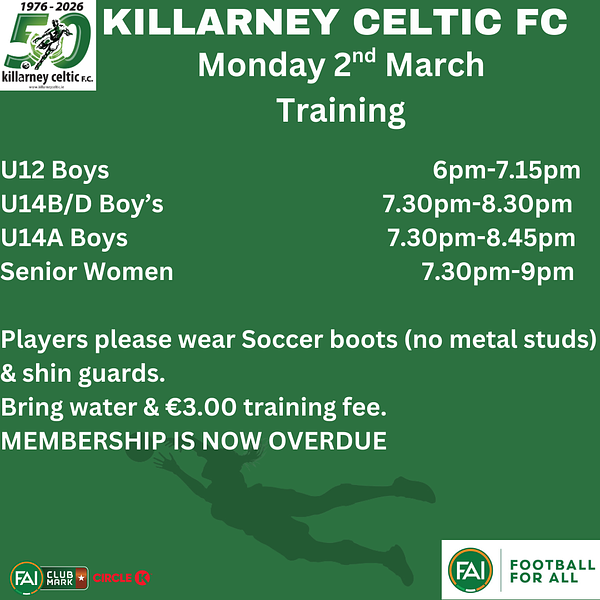 🇳🇬Killarney Celtic FC Club training gear available online on link below: