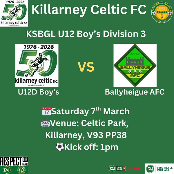 Download our mobile app to hear more about Killarney Celtic FC.