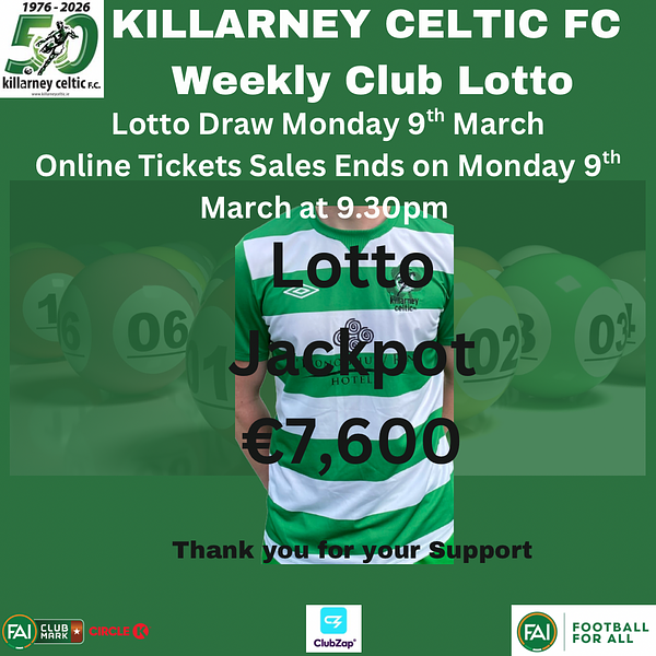 🇳🇬Killarney Celtic FC Lotto is the only source of fundraising in the club we are asking all members to please support our Lotto.