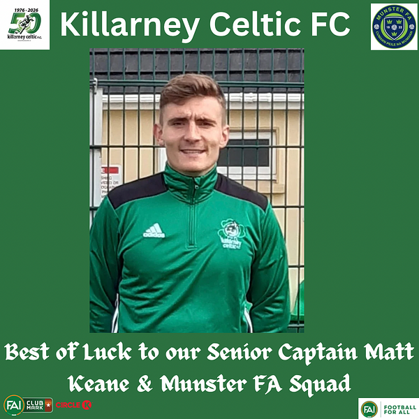 🇳🇬👏Congratulations to our Senior Captain Matt Keane for being selected on the Munster FA Interprovincial Team.