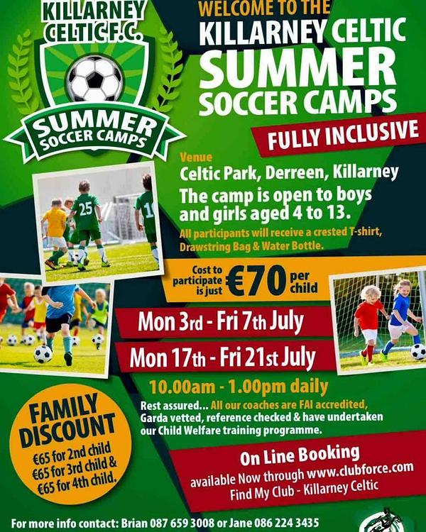 Killarney Celtic FC are delighted to announce our very own Summer Soccer Camps.