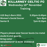 ⚽️Training📆Wednesday 19th November🏟️Venue: Celtic Park...