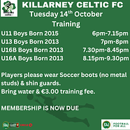 ⚽️Training📆Tuesday 14th October🏟️Venue: Celtic Park, K...