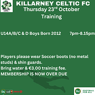 ⚽️Training📆Thursday 23rd October🏟️Venue: Celtic Park, ...