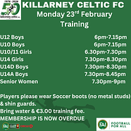 ⚽️Training 📆Monday 23rd February🏟️Venue: Celtic P...