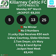 🇳🇬 Killarney Celtic Lotto Monday 30th March 2026...