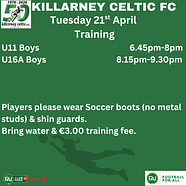 ⚽️Training 📆Monday 20th April🏟️Venue: Celtic Park...