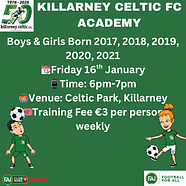 ⚽️Training 📆Friday 16th January🏟️Venue: Celtic Park, Killarney, V93 PP38🎟️Training fee: €...