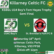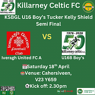 Celtic came flying out of the blocks in the 2nd half pressing for an equaliser but could not break down a resolute Iveragh defence and a very inform goalkeeper. Iveragh had a few opportunities to go 2-0 only for 3 successive & brilliant safes from Celtic Keeper Brian O’Connor kept us in the game. The equaliser finally came as Celtic kept pressing and a cross from Aodhan O’Halloran was latched onto by Noah Murphy to make it 1-1 with only minutes to go as it played out Celtic had 2 wonderful chances to sneak the victory in added time only for the Iveragh Keeper to stand tall and deny us on both occasions. A fair result in the end our boys.