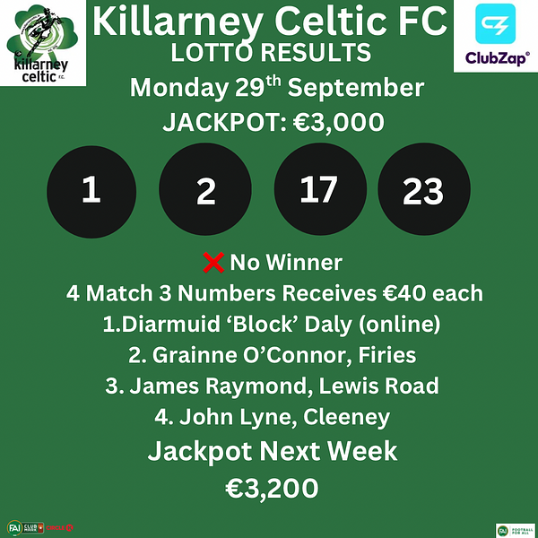 🇳🇬 Killarney Celtic Lotto Monday 29th September 2025