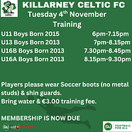 ⚽️Training📆Tuesday 4th November🏟️Venue: Celtic Park, K...