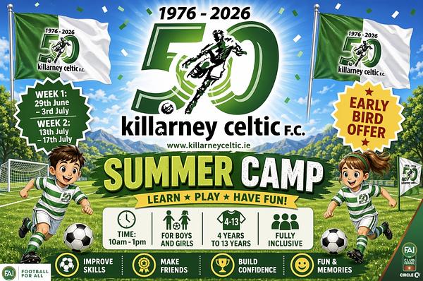 📣Killarney Celtic FC Summer Camps are Returning Save the Dates