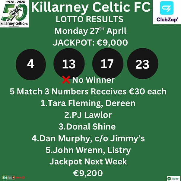 🇳🇬 Killarney Celtic Lotto Monday 27th April 2026